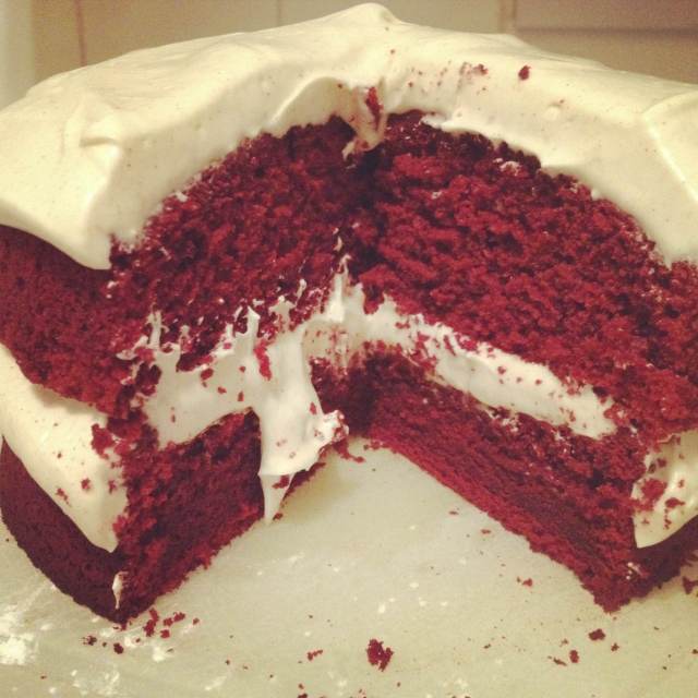 Last year was a four-tiered German Chocolate mountain, this year was our first ever attempt at Red Velvet.