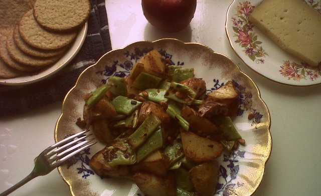 2c cooked potatoes, roughly chopped [I used up leftover new potatoes, roasted with a tbsp of fennel seeds]