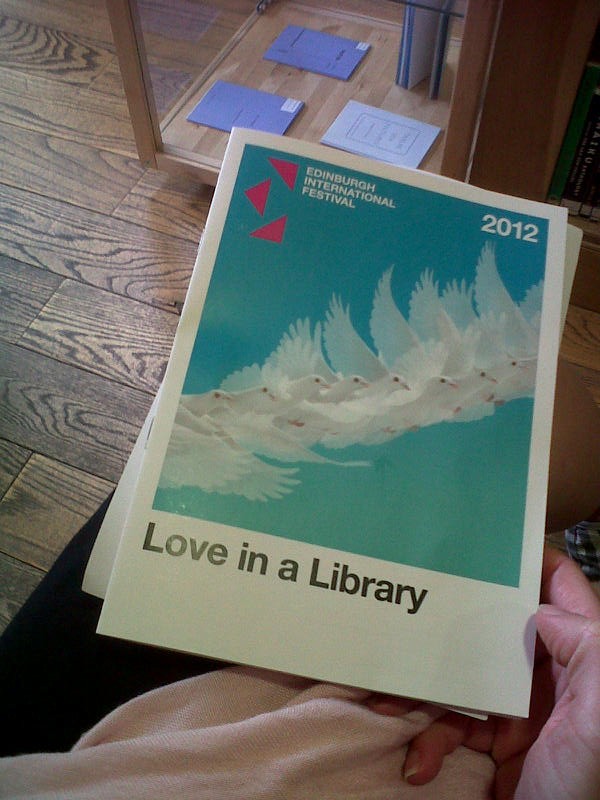 You can see the full EIF programme (of much bigger, more grandiose productions) on their website, and you can read more about Love in a Library on their community engagement pages