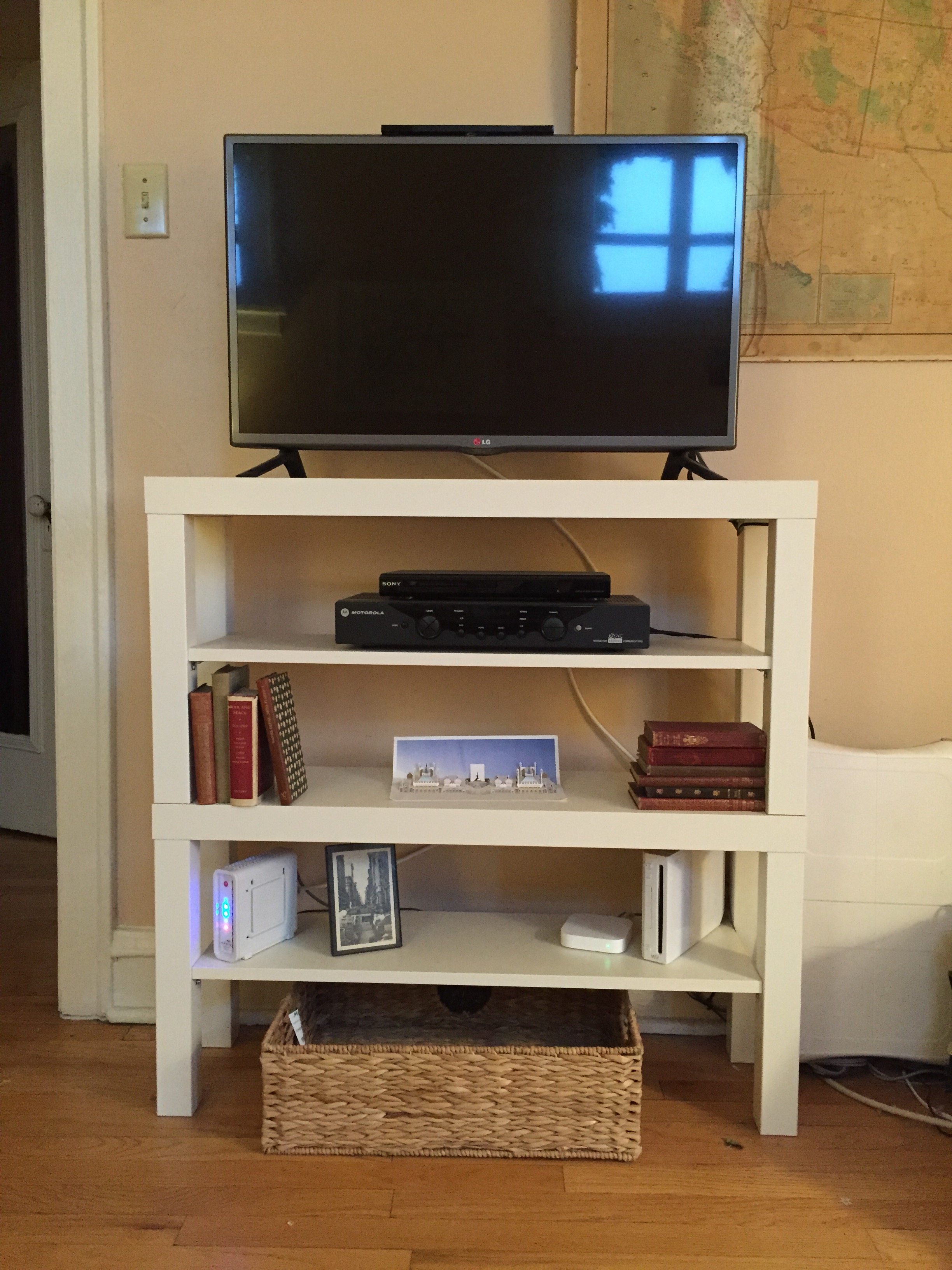 Is it perfect? No. But at that price it’ll last until we move again and decide if we want to re-purpose something with more personality or if we want to join the ranks of people who hang tvs on the wall like they’re art.