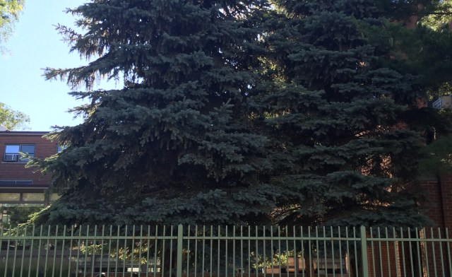 Nestled on the other side of the pavement resides a very posh dormatory. It has a fountain in the garden and a riot of bird song in the branches.